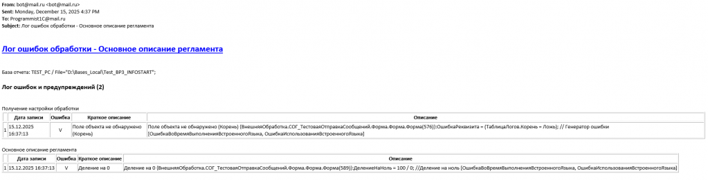 При отправке сообщений через регламент, могут возникать ошибки. Это может быть ошибка сервера, почтовый сервер может быть недоступен. Или Учетная запись может быть заблокирована, от имени которого отправляются уведомления.