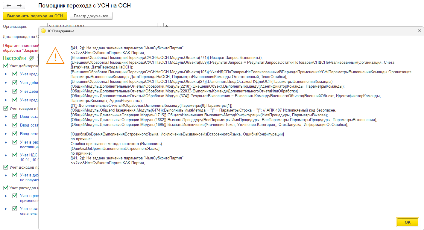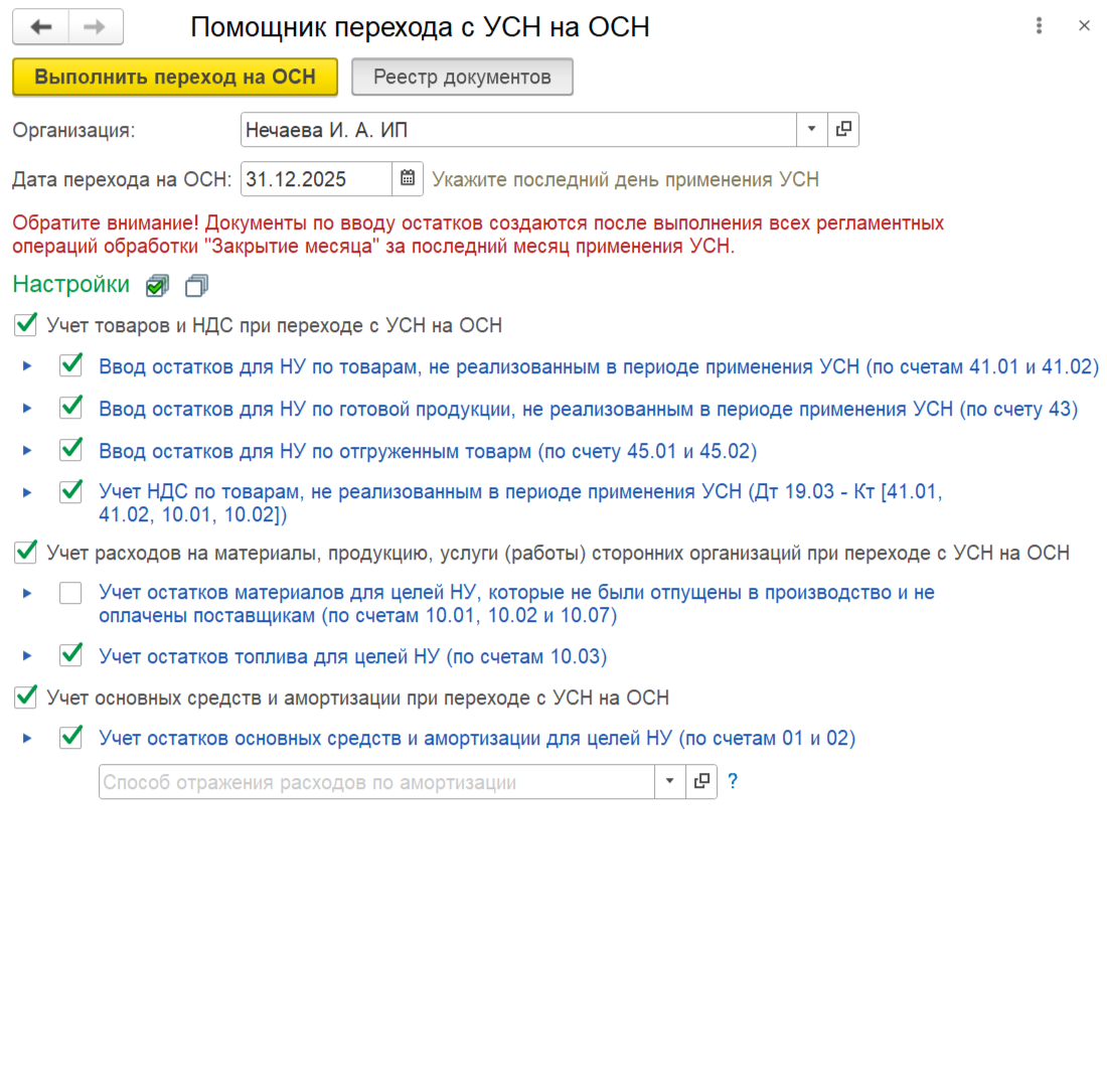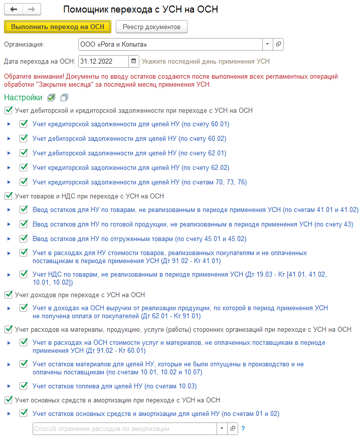 4. Нажмите кнопку Выполнить переход на ОСН.