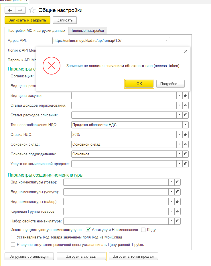 - Добавлен просмотр и установка типовых настроек, которые влияют на загрузку данных из МС.