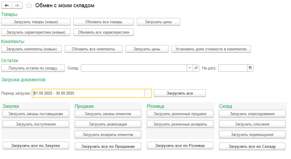 - Загрузка и учет комплектов из Моего склада