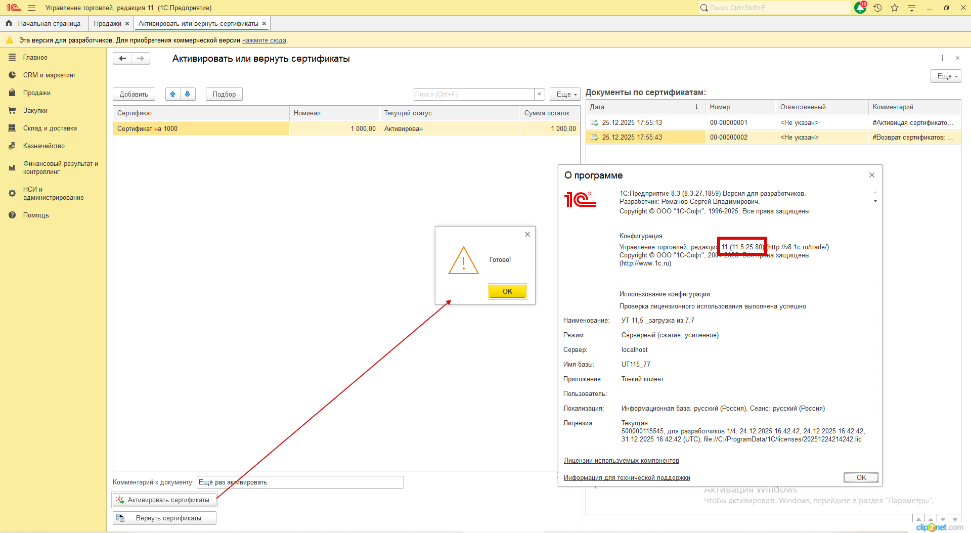 - Управление торговлей, редакция 11, релизы 11.5.25.80, 11.4.6.207