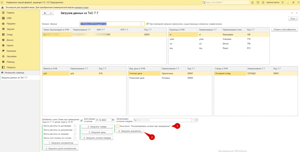 * Появилась задача с переносом данных из ТиС 7.7 в УНФ: остатки на начало года и документы за этот год. Документы нужны были только "Поступление ТМЦ" и "Реализация" - пока перенос других документов не делал.
