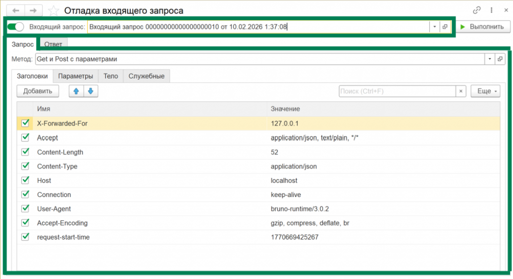 Добавлена возможность прямо в обработке смотреть все параметры входящего запроса и редактировать их: