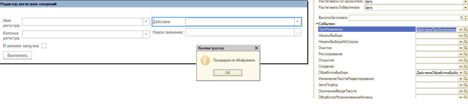 4) Реквизит "Новое значение" заполняется если выбрано действие "Изменить записи регистра", в случае, когда указано действие "Удалить записи регистра" реквизит можно не заполнять.