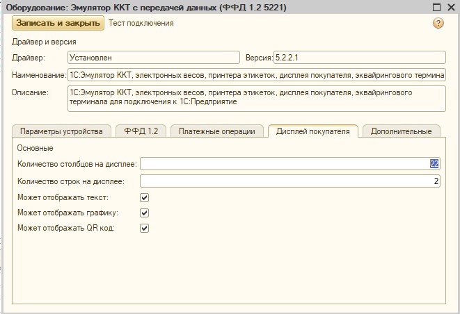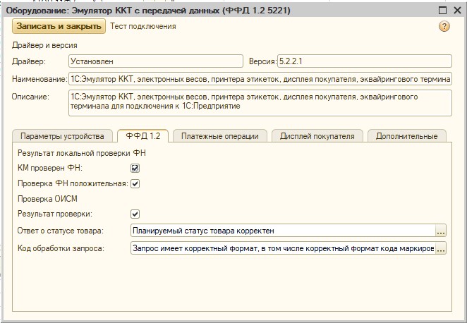 Версия ФФД - 1.2, ревизия интерфейса - 4006, версия макета эмулятора - 5.2.2.1.