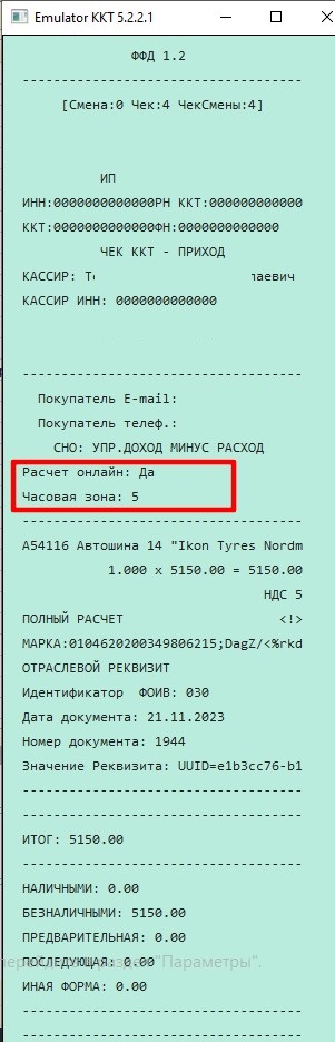 Эмулятор ККТ ФФД 1.2 4006 УТ 10.3 обычные формы НДС 5% 7% разрешительный режим часовая зона TimeZone 01.09.2025
