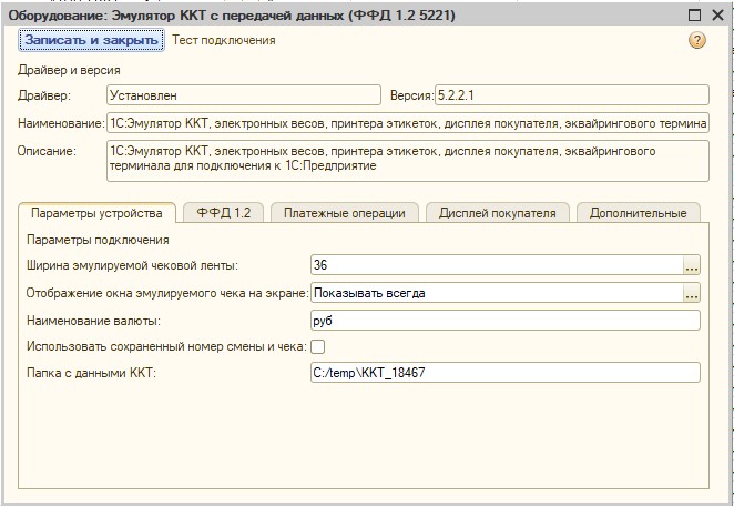 Эмулятор торгового оборудования ККТ для конфигураций 1С на обычных формах - УТ 10.3, УПП 1.3, Розница 1.0.