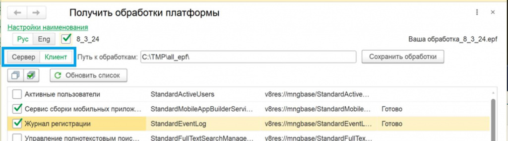 • Добавлена возможность сохранять обработки с наименованием на русском языке.