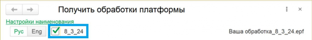 • Появилась возможность добавлять к наименованию обработки текущую версию платформы.