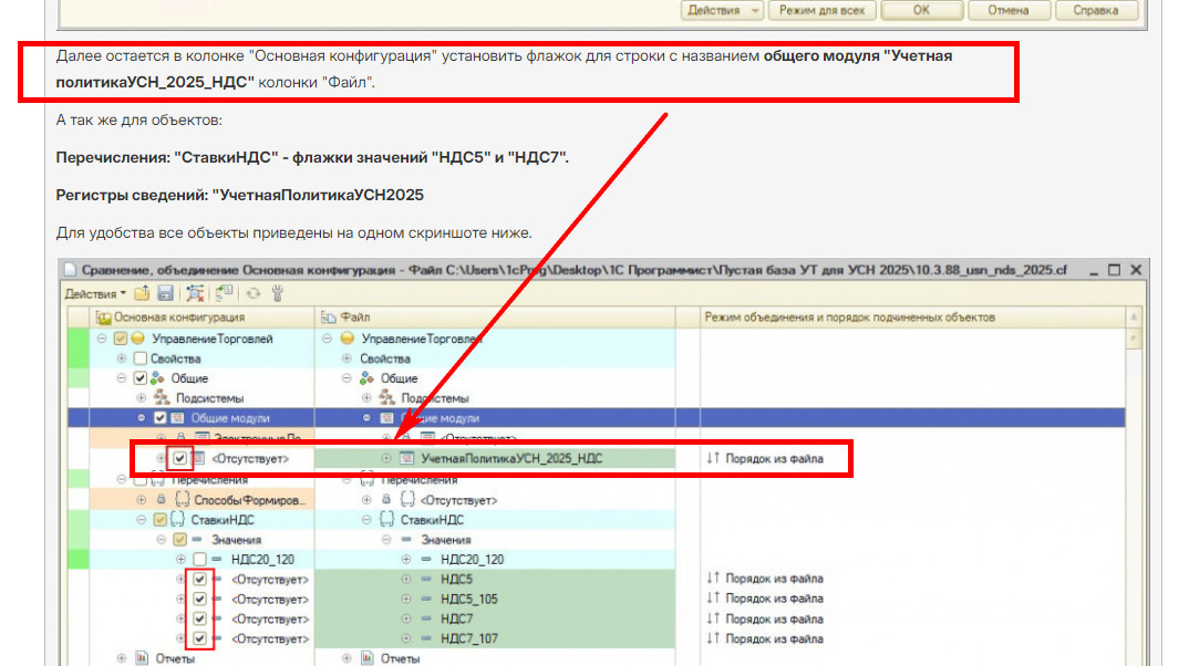 Как внести изменения в Вашу конфигурацию по данным скачанного файла