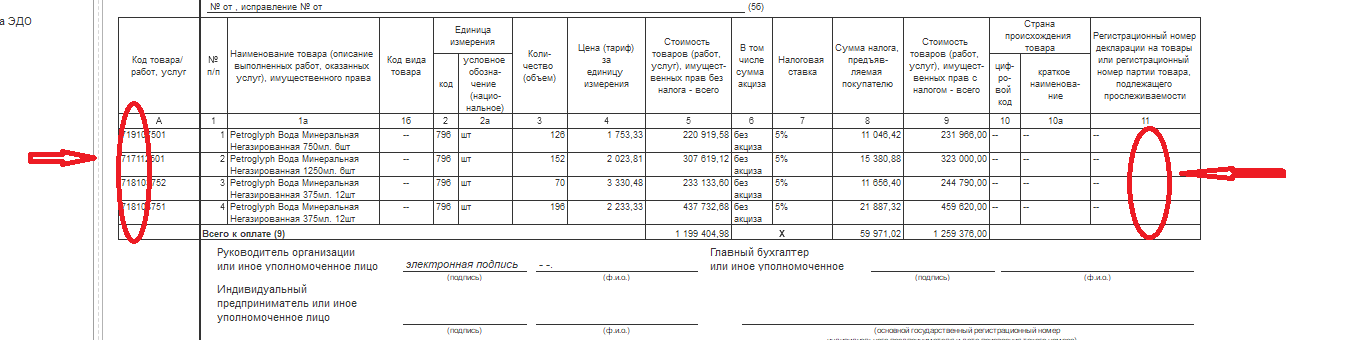 Артикул партнера в ЭДО УПД для УТ11.5