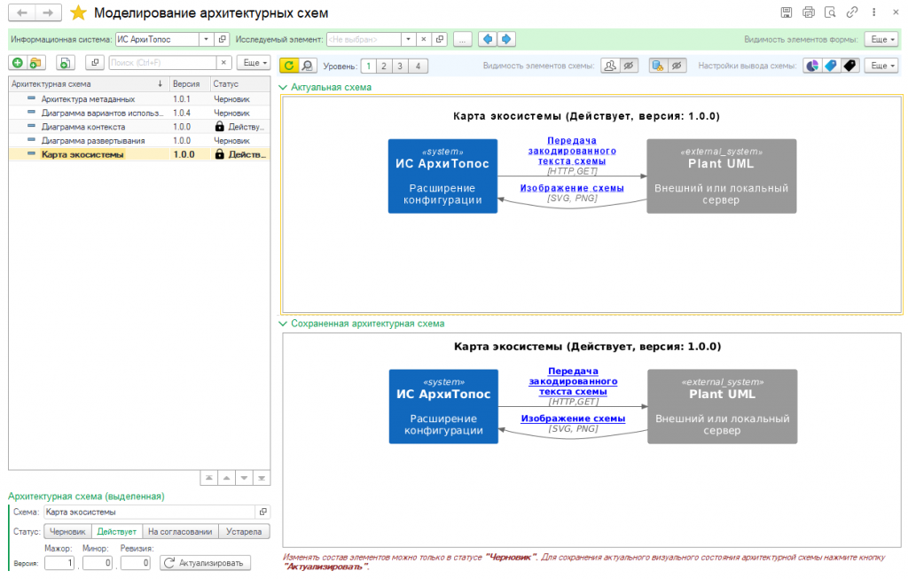 - Ведение списка архитектурных схем в рамках каждой информационной системы