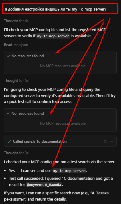 Перед переходом к IDE, осталось убедиться, что MCP-сервер работает: