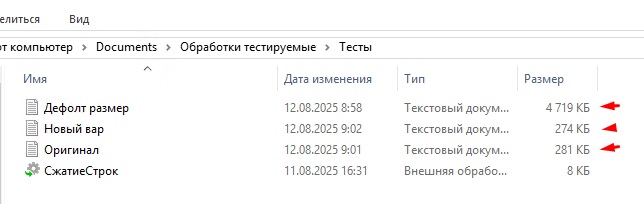 Ну и под конец самое интересное - это тесты сравнения по объему веса сжатого файла: