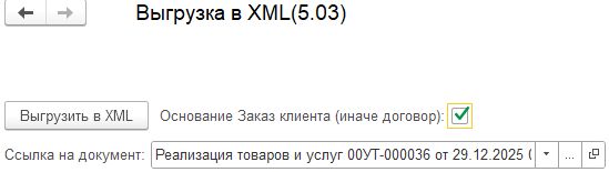 2."Основание Заказ клиента". Если установить галочку, в xml-файле в поле «Основание передачи (сдачи) / получения (приемки)» указывается документ основания Заказ клиента. В противном случае в этом поле указывается договор из документа.
