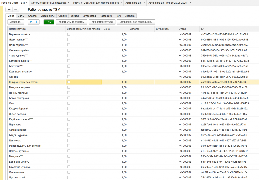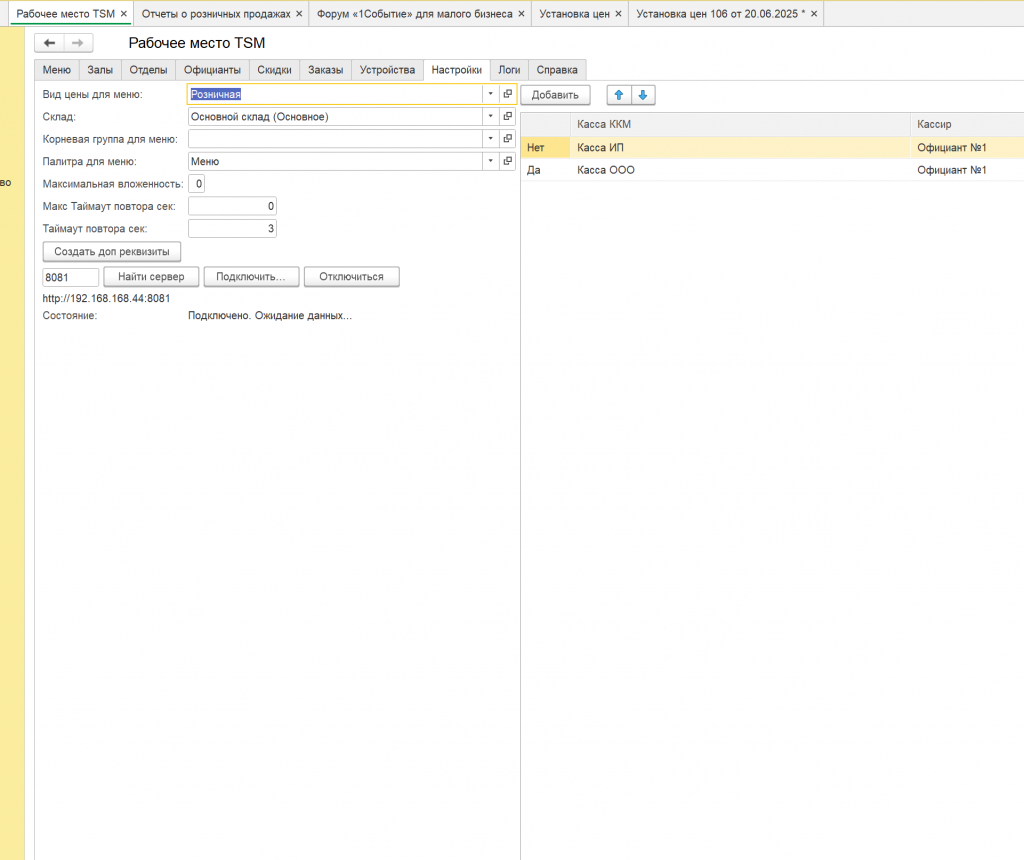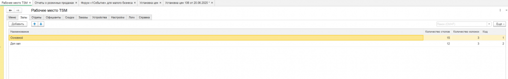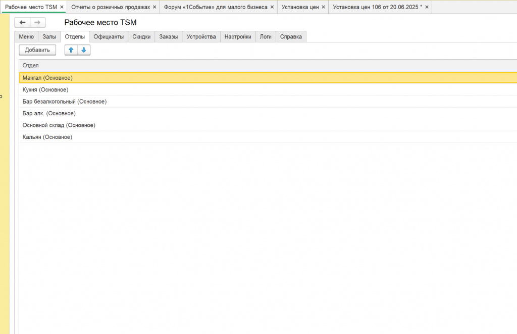 5. Убедитесь, что на планшетах отображается актуальное меню, залы, отделы и пользователи