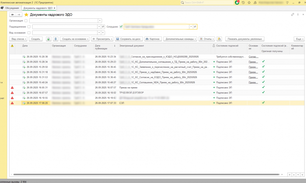 При работе с КЭДО (1С:Кабинет сотрудника) и электронно подписанными документами возникла необходимость автоматизировать два взаимосвязанных процесса: формирование комплектов документов для передачи на подпись и последующее прикрепление подписанных файлов к объектам системы. До момента реализации документы печатались по отдельности, в файл word, что занимало определённое количество времени. Штатный функционал не предоставляет инструментов для массовой работы с документами, что приводит к значительным временным затратам.