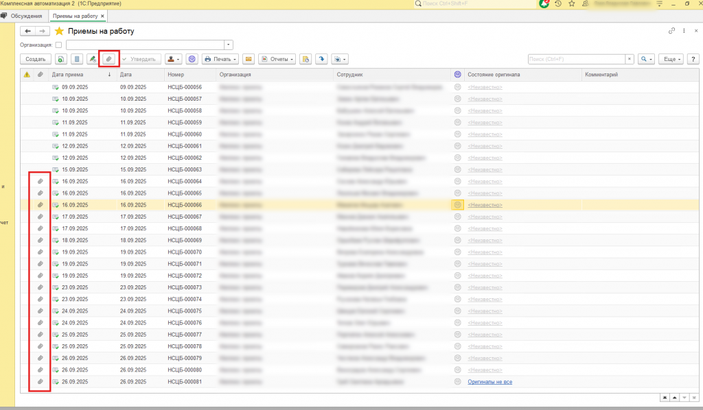 Универсальность прикрепления файлов — в текущей реализации файлы прикрепляются к документам "Прием на работу", но логика может быть адаптирована для работы с любыми объектами.