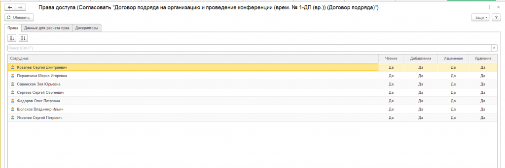 Права на просмотр задач сотрудников других подразделений и организаций в 1С: Документооборот 3.0