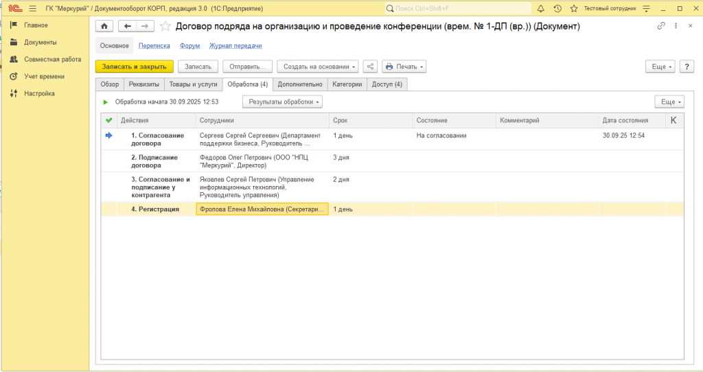 4. Функционал реализован через расширение для конфигурации Документооборот КОРП, редакция 3.0 (3.0.18.19).