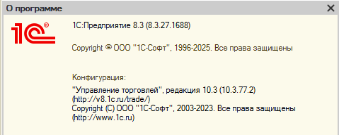 - Управление торговлей, редакция 10.3, релизы 10.3.88.3, 10.3.40.1, 10.3.39.1, 10.3.29.1, 10.3.18.3