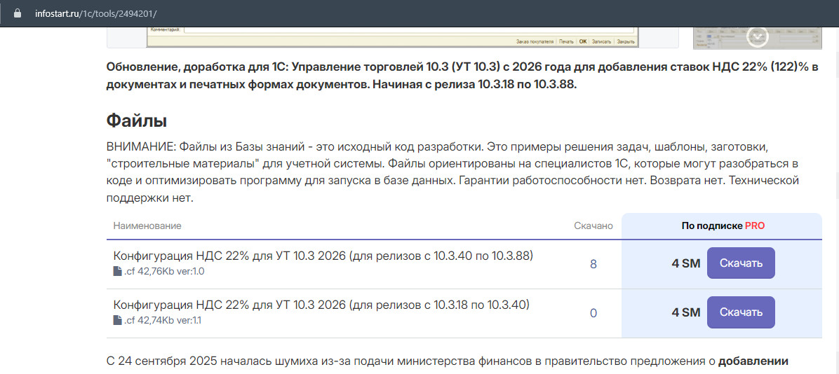 С 24 сентября 2025 началась шумиха из-за подачи министерства финансов в правительство предложения о добавлении ставки НДС 22% и снижении порога для УСН с 60 млн. руб до 10 млн. К моменту 29 сентября новость облетела интернет. И каждое издание, связанное с этой темой пишет так, словно измненения законодательно уже приняли. В частности, например, на сайте buh.ru можно встретить заголовки примерного содержания: "НДС 22%: что делать в переходный период.". И звучат так, словно событие уже окончательно состоялось. НО по факту на текущий момент (1 октября 2025) правительство не проводило заседаний по рассмотрению и утверждению нового предложения. НО, как это обычно бывает в РФ - скорее такое изменение будет принято, чем отклонено. Особенно учитывая особенности геополитической обстановки, пополнять бюджет за счет чего-то нужно. А раз от министерства не поступило других более альтернативных и рациональных предложений, то скорее всего ставке НДС 22% с начала 2026 года скорее быть, чем наоборот. Поэтому, чтобы снизить ажиотаж, уже сейчас размещаю возможность добавления в конфигурации Управление торговлей редакции 10.3 возможность добавления ставки НДС 22% как в собственных документах отгрузки, так и в документах поступления от поставщиков.
