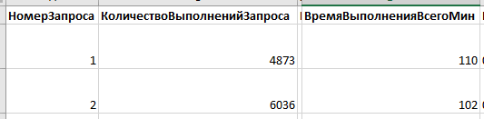Данные цифры говорят о том, что запрос номер 1 выполнялся 4873 раза и сервер SQL затратил в общей сумме 110 минут.