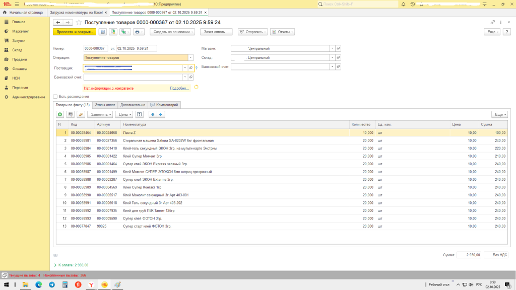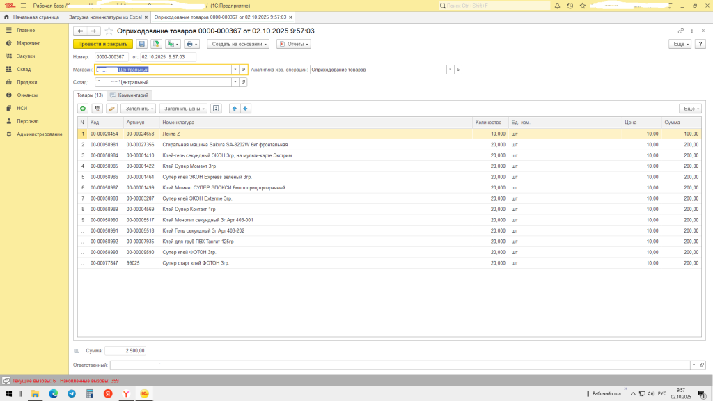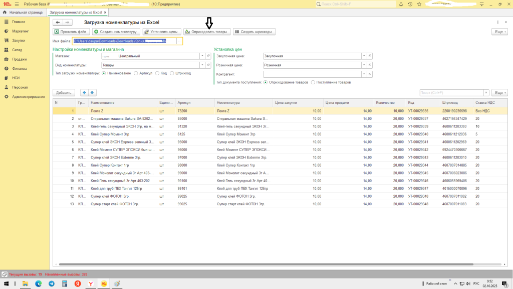 Обработка Загрузка данных номенклатуры, цен, штрихкодов, документов Оприходование товаров и Поступление товаров из файла Exсel в 1С: Розница 2.3.