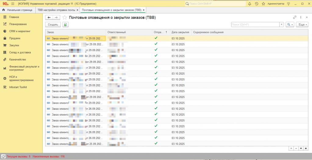 Снятие резерва документов "Заказ Клиента" рассылка отчета о закрытых документах "Заказ клиента"