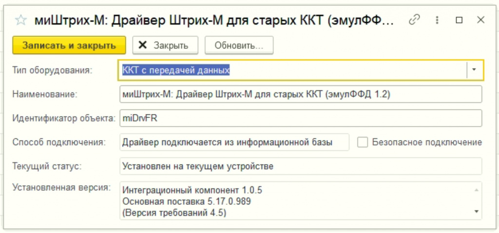 миШтрих-М: Драйвер Штрих-М для старых ККТ, который не поддерживают функции современных с отправкой чеков в ОФД, маркировкой и прочее. Важно понимать что эти функции, естественно, не появляются, но современные конфигурации 1С этот аппарат воспринимают как нормальный ККТ и с ним работают, идёт печать чека, работа со сменой.