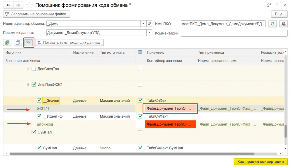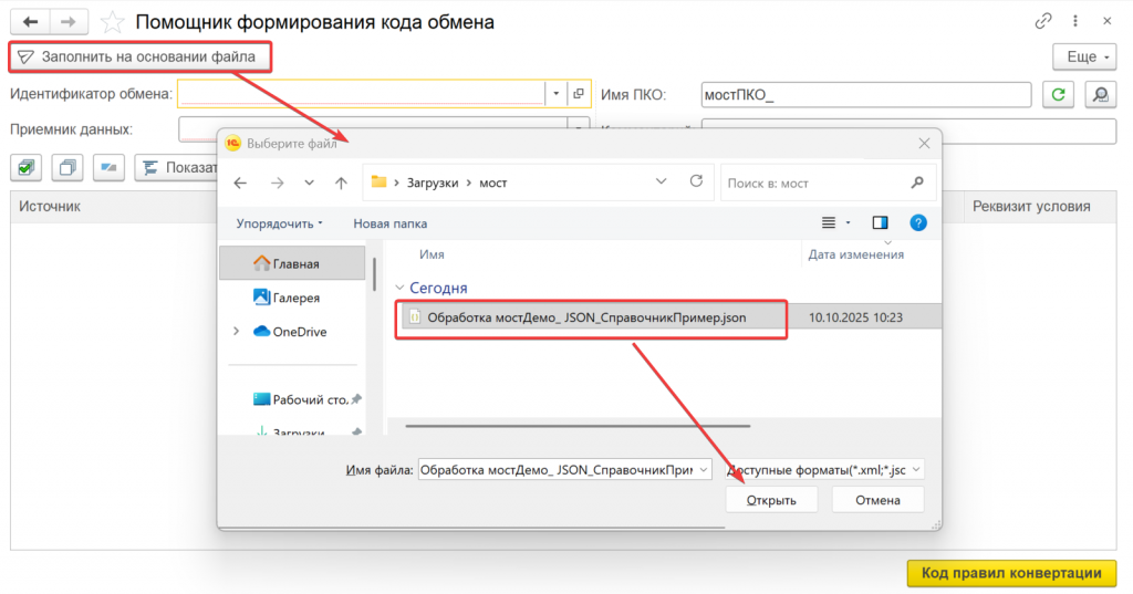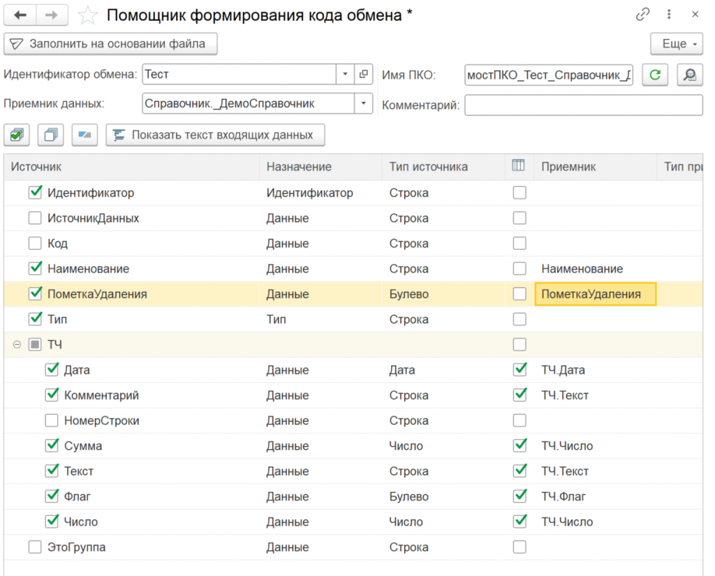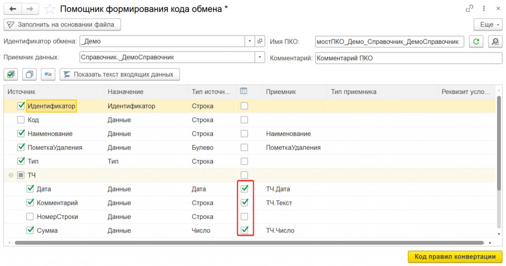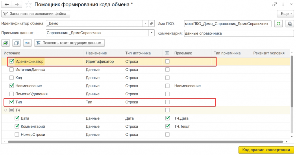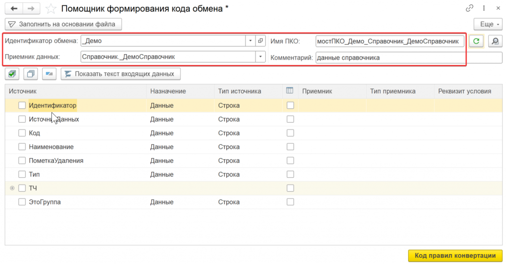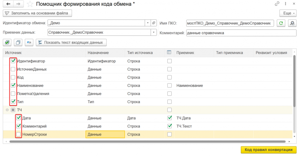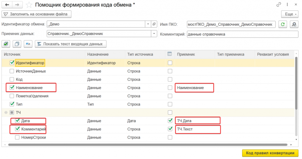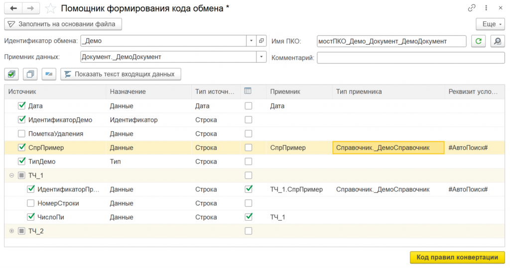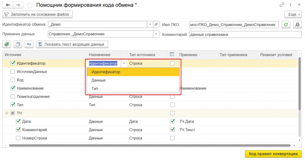 • Интерактивное описание правил конвертации Соответствия в объект 1С.