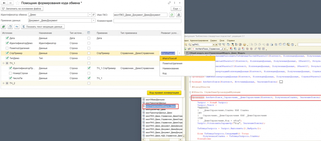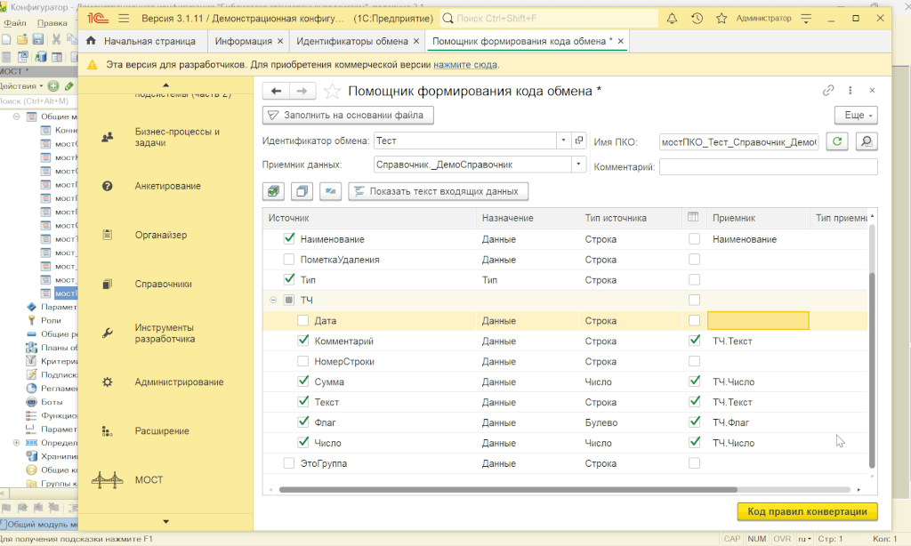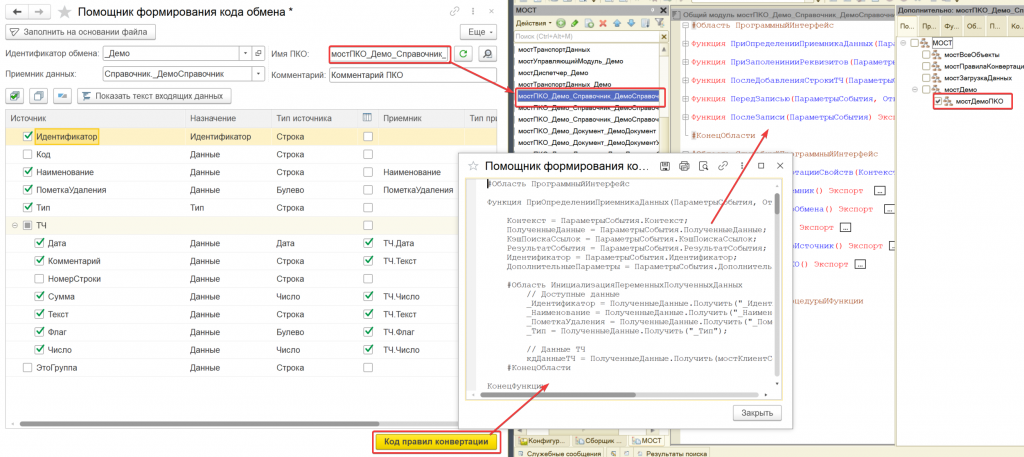 Для более легкого восприятия в подсистему "Мост - конвертация данных" добавлен Демо пример, в котором обыграны самые сложные, на мой взгляд, примеры правил конвертации.