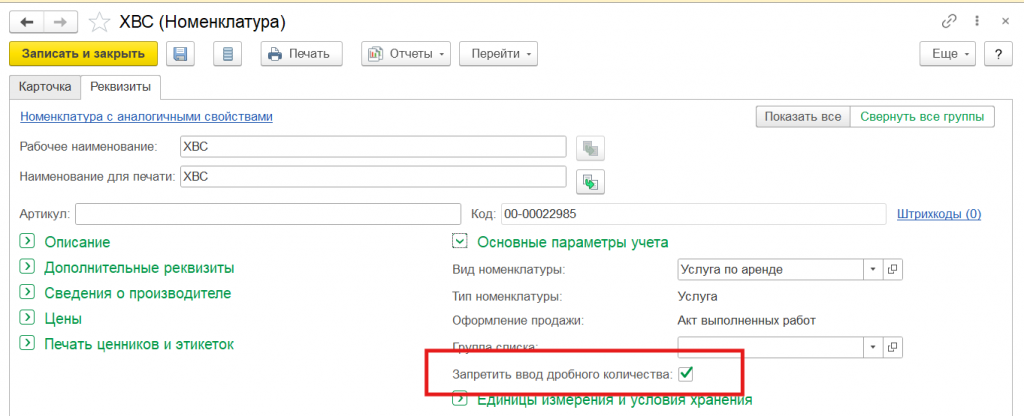 - Настроить в карточках номенклатуры отметки "Запретить ввод дробного количества";