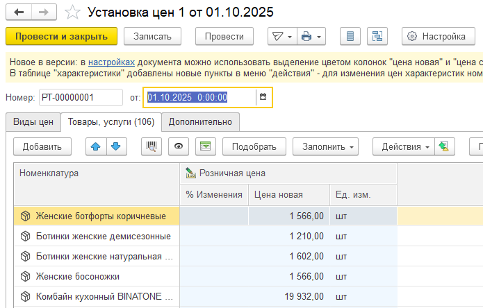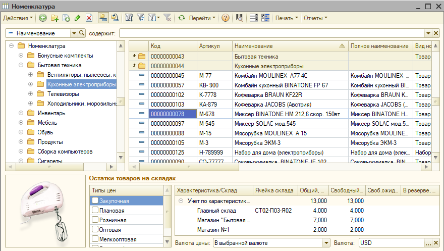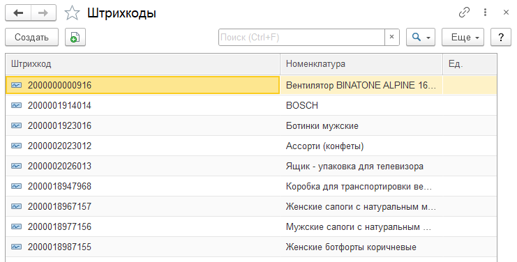 Представлен справочник "Номенклатура" последней редакции на 10.3