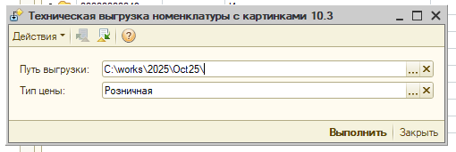 Для выгрузки просто воспользуемся одной кнопкой "Выполнить" обработки "Техническая выгрузка..."