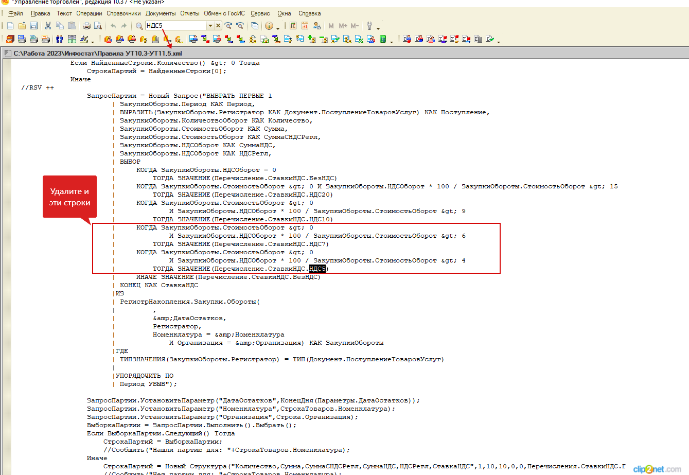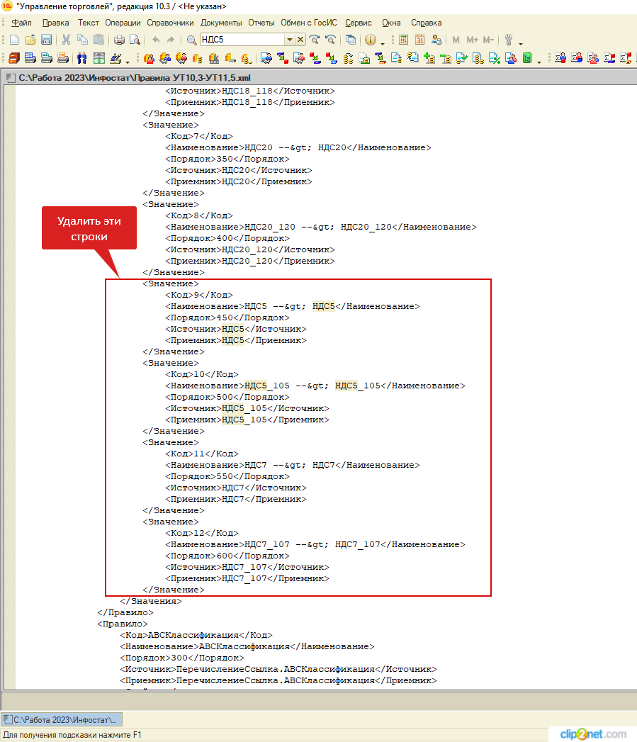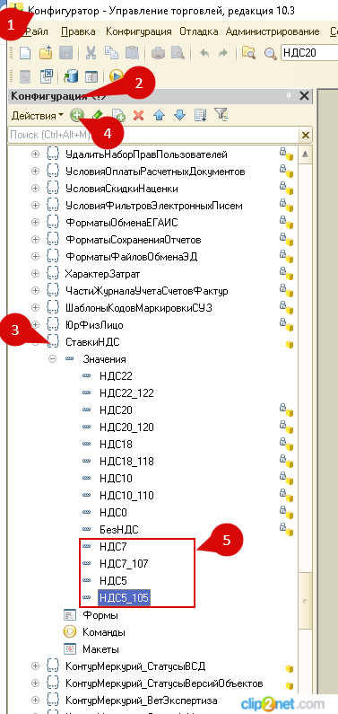 7. В конфигурацию УТ 10.3 добавлены в перечисление СтавкиНДС --> НДС5 и НДС7. Т.е. перед использованием этих правил добавьте в конфигураторе УТ 10.3 новые ставки НДС.