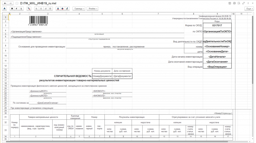 Обработка MXL параметры макета параметры области область макета табличного документа Создание структуры параметров макета