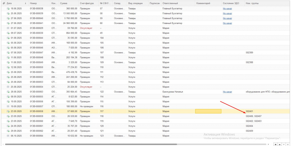 Чтобы появились номер группы, нужно провести документ, после проведения документа появятся номера групп