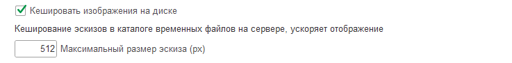 • "Кеширование изображений" - сохранение эскизов в каталоге временных файлов на сервере.