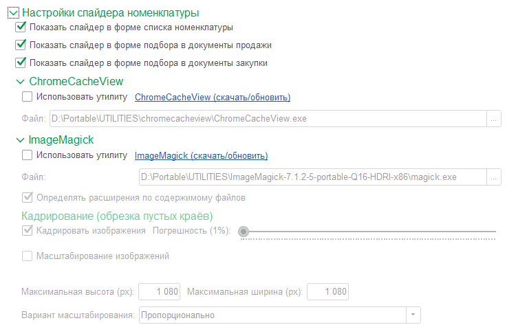 • "Показать слайдер в форме списка номенклатуры"