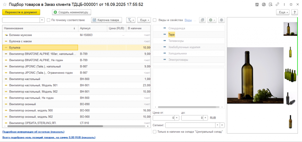 • "Показать слайдер в форме подбора в документы продажи"