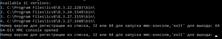 Скрипт для серверов на Windows находит установленные службы 1С и позволяет быстро осуществить регистрацию утилиты администрирования, а также запуск консоли MMC нужной разрядности.