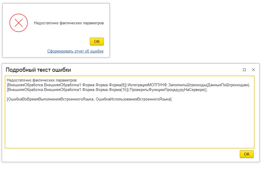 Механизм проверки позволяет выявить такие случаи как опечатки: в данном случае специалисты 1С забыли запятую при вызове: