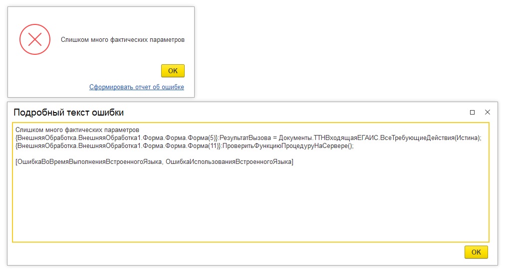 - Слишком много фактических параметров.
