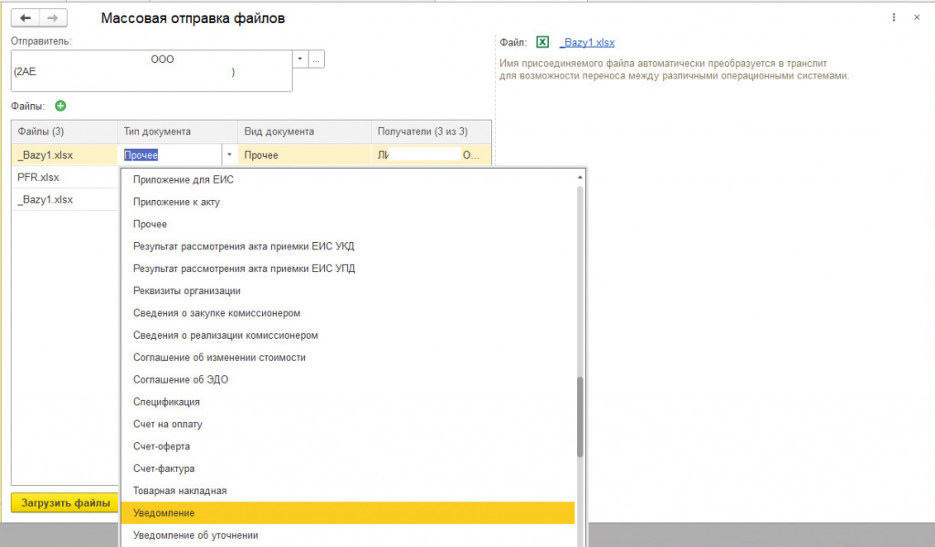 В частности, при выборе документов для отправки в таблице получателей не отображается вид и тип документа ЭДО, проставляется вид "Прочие" и система не позволяет изменить эту информацию. От вида документа для получателя зависят параметры обмена: маршрут подписания, обмен без подписи, извещение о получении, ответная подпись и т.д.