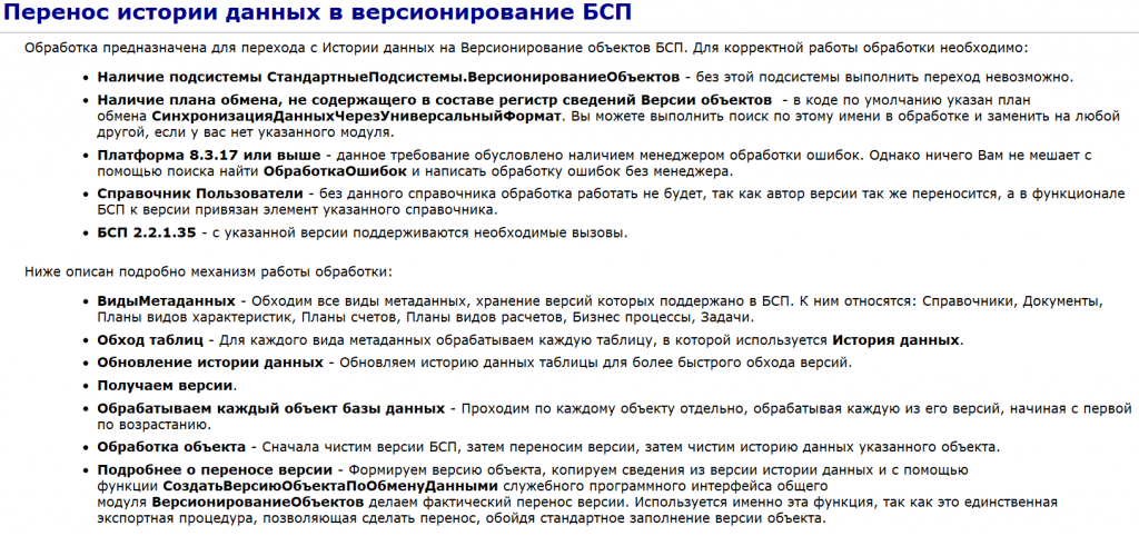 Обработка БСП Версионирование История данных Внешняя обработка Перенос данных