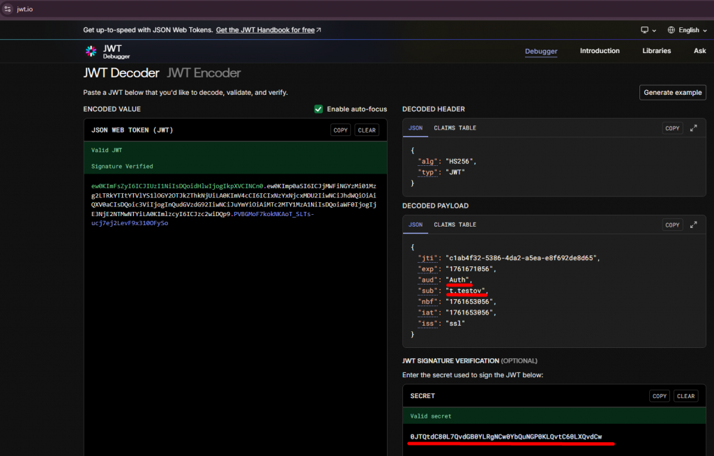В него следует добавить требуемые строки, включая секретный ключ, указанный в константе auth_SecretKey, чтобы платформа могла корректно выполнять верификацию токена и обеспечивать доступ к данным.
