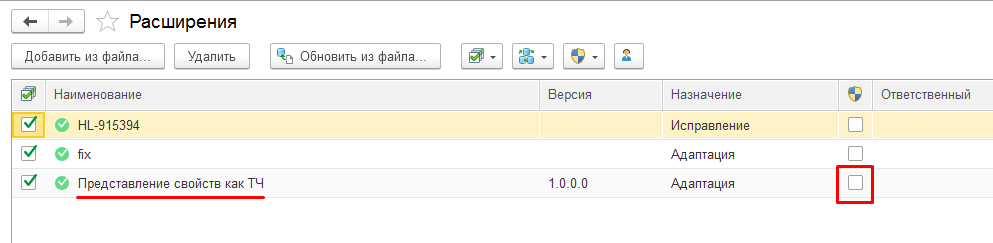 Флаг «Безопасный режим» необходимо отключить, т.к. расширение перехватывает общий модуль "УправлениеСвойствами".