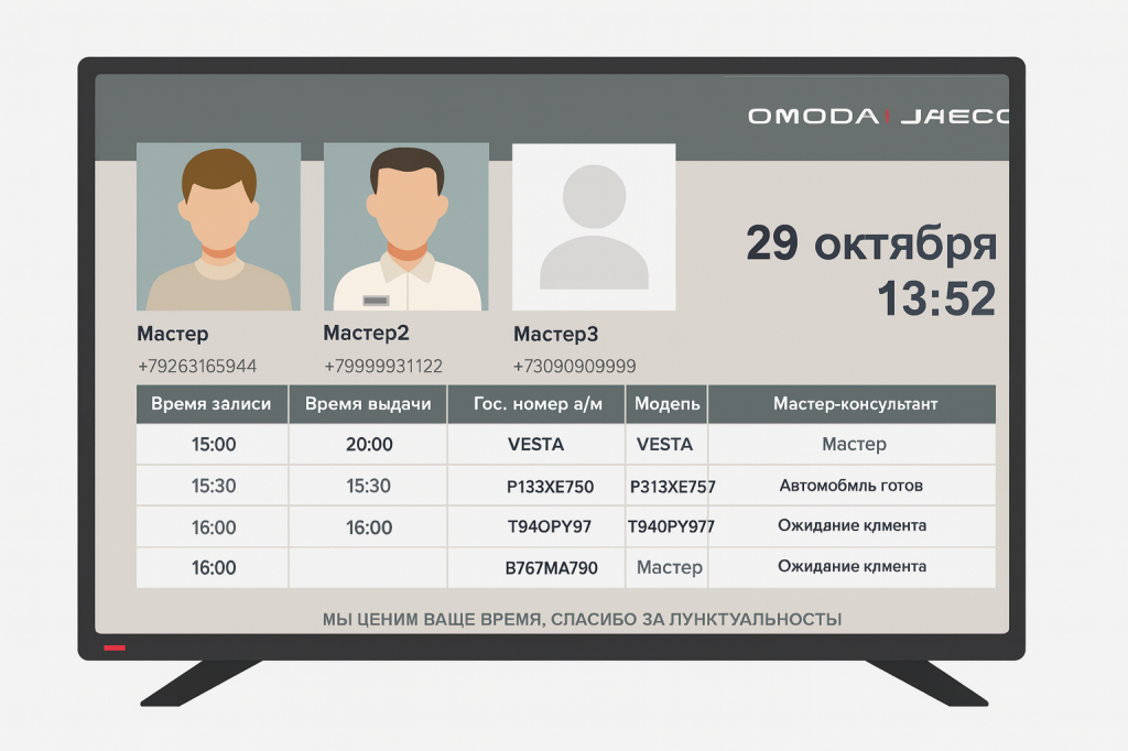 Вывод электронной очереди в сервисном отделе дилерского центра является обязательным условием завода-изготовителя. QSpot предлагает удобное решение для реализации этой задачи — достаточно выполнить несколько простых шагов.