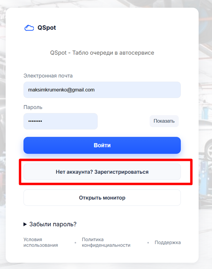 Переходим на сайт qspot.ru и нажимаем ссылку «Зарегистрироваться».